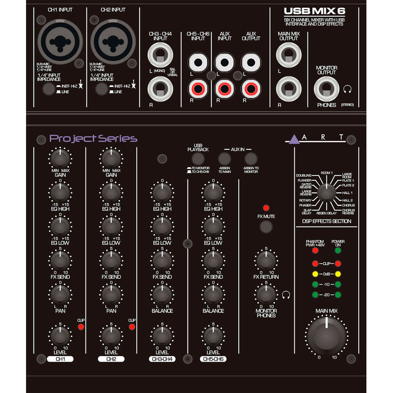 ART USBMix6 компактный 6-канальный микшер/внешний аудио интерфейс.