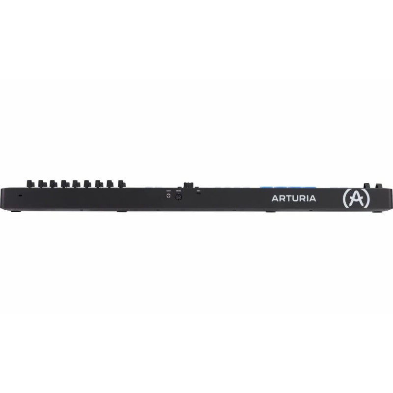 Arturia KeyLab Essential 61 mk3 также является и удобным MIDI-контроллером, третье поколение устройств имеет обновленный дизайн с продвинутым интуитивным управлением. Имеются предварительные настройки для Ableton Live, Logic Pro, FL Studio, Cubase, Bitwig Studio, а также широкая совместимость с протоколами MCU и HUI. По центру контроллера имеется крупный информативный дисплей 2,5" с четырьмя кнопками управления параметров навигации. Встроенный арпеджиатор позволяет переключаться между режимами - Scale, Chord Play, Arpeggiator (с пресетами) и Hold.