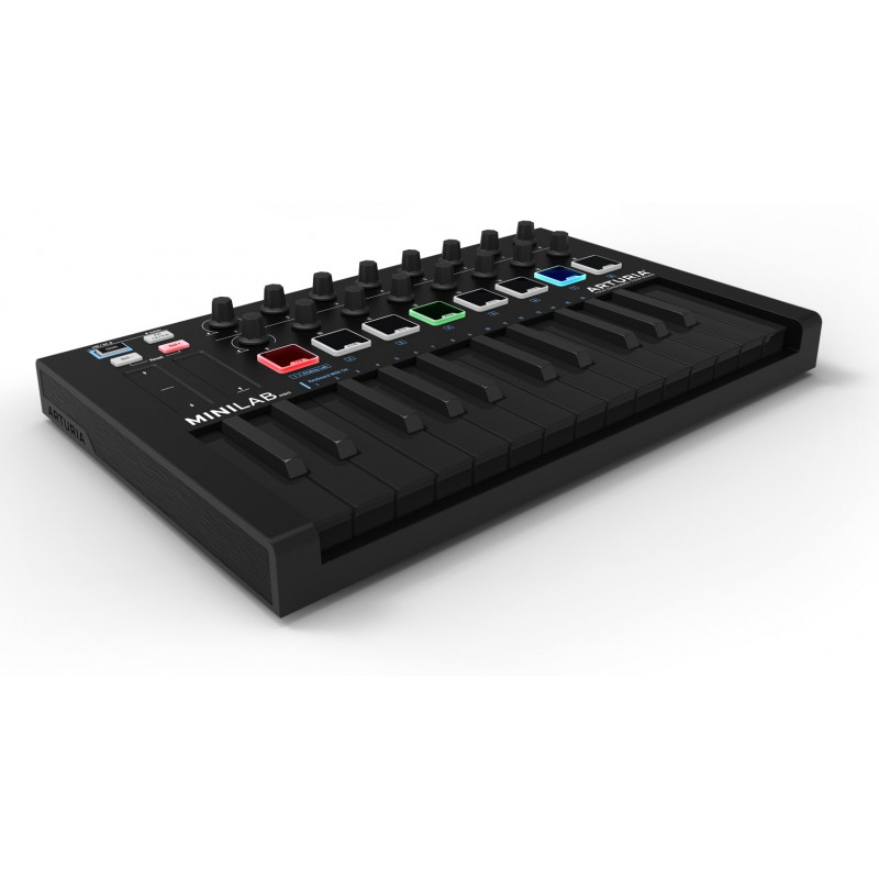 Arturia MiniLab mkII Deep Black Edition портативный 25-клавишный USB-MIDI-контроллер для музыкантов и продюсеров. В плане функционала новинка не отличается от оригинальной модели MiniLab, однако имеет обновлённый дизайн и ещё более компактный корпус. Также разработчик подчёркивает, что каждый компонент контроллера был улучшен, от клавиатуры до «крутилок». Ещё одним важным отличием версии MKII является расширенный набор прилагаемого софта, который включает программу Ableton Live Lite и виртуальные инструменты Analog Lab Lite и UVI Grand Piano Model D.
