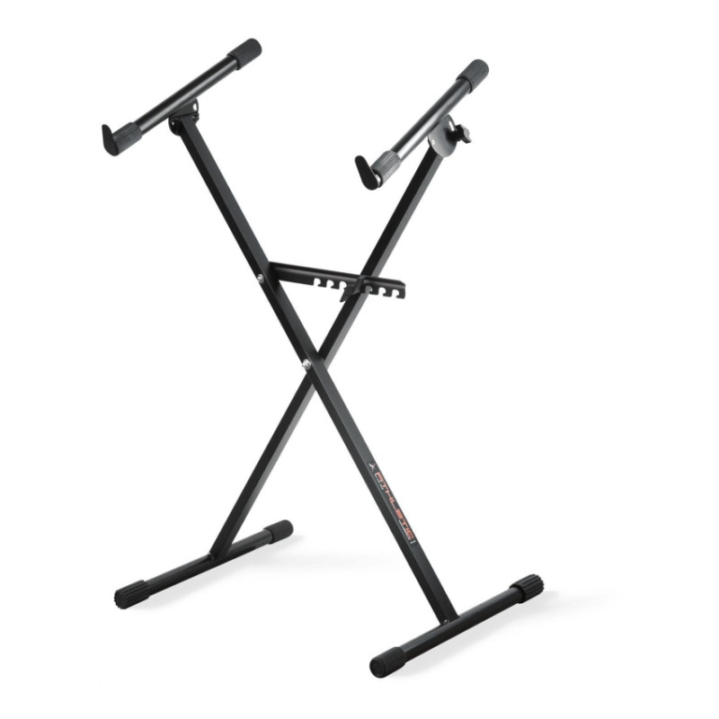 Стойка для клавишных с Х-образной однорамной конструкцией выполненной из прямоугольного стального профиля, с семиступенчатой регулировкой по высоте и регулировкой наклона клавишного инструмента. Имеются ограничители. Клавишная стойка ATHLETIC KB-4 предназначена для инструментов весом до 25 кг.