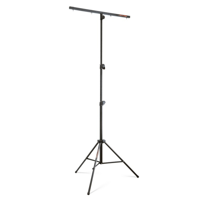 Это простой и удобный вариант для крепления света. Штатив оснащен двойным креплением ног, что обеспечивает достаточную устойчивость. Вес стойки 6,6 кг и небольшая длина в сложенном состоянии позволяют перемещать ее без особых проблем. В комплект входит Т-образная перекладина, на которую можно разместить до 4 точек света. Ширина луча от каждой точки достигает 100 см. ATHLETIC LS-4KIT оборудована телескопической системой, с помощью которой световые приборы можно поднять вверх на 3 м. Эта стойка способна выдерживать нагрузку максимум до 30 кг.