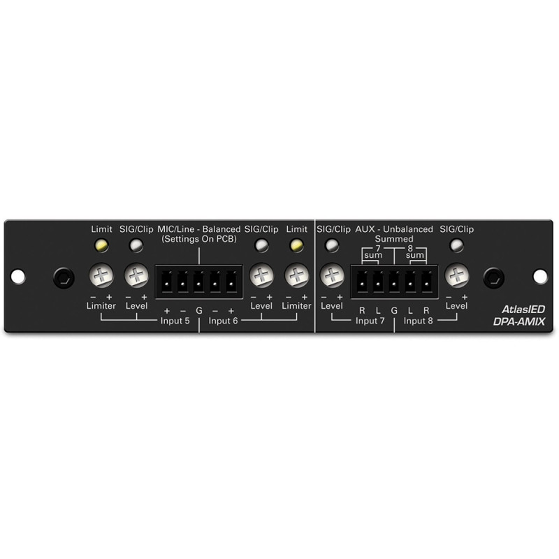 Atlas IED DPA-AMIX – Карта расширения на четыре дополнительных аналоговых входа, предназначенная для усилителей DPA2402, DPA1202, DPA602, обеспечивает прием четырех каналов аудио.