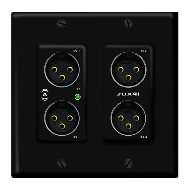 ATTERO TECH UNDX4I B-C - 4x2 канальная настенная врезная панель с XLR входами и Phoenix выходами. Управление Dante.