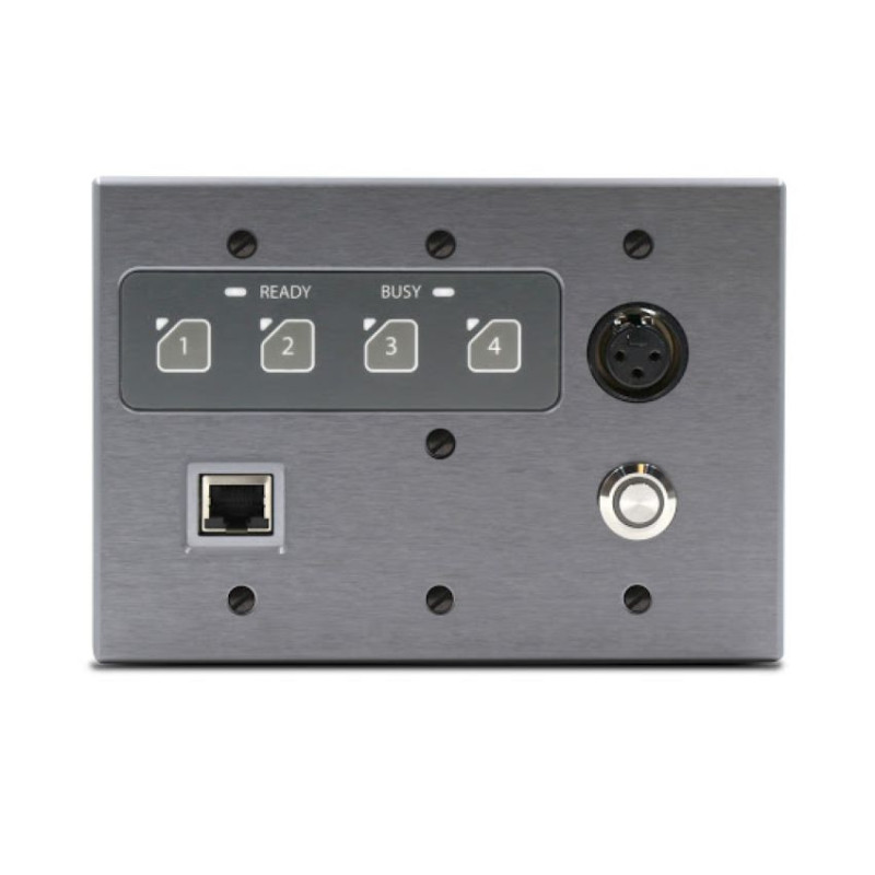 - Кнопки зон Четыре с белой подсветкой, каждая из которых имеет соответствующий двухцветный светодиодный индикатор состояния. Состояние светодиода полностью контролируется по сети, а состояние кнопок можно отслеживать по сети.