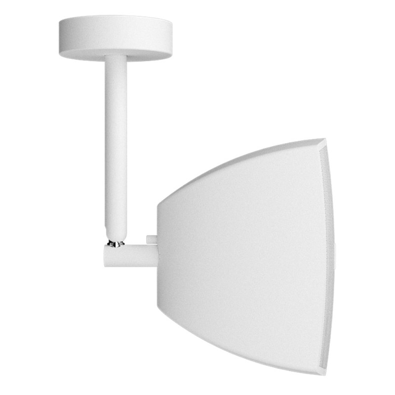 С одной стороны кронштейн имеет крепление к стене и клеммную двухконтактную колодку EuroBlock для подключения к усилителю, а с другой усиленный разъем 1/4" Jack TRS, на котором надежно фиксируется акустическая система. Это позволяет быстро и легко производить монтажные работы, а также направлять громкоговоритель вертикально или горизонтально, менять угол наклона. Конструкция имеет элегантный и эстетический внешний вид без видимых проводов и креплений. Угол раскрытия акустической системы составляет 145 x 170 градусов. Защитная решетка изготовлена из стали. Устройство оснащено защитой от пыли и влаги по стандарту IP40, а схемотехника снабжена защитой от возможных перегрузок. Вес системы составляет 390 грамм. В комплект поставки входит громкоговоритель, кронштейн и комплект документации.