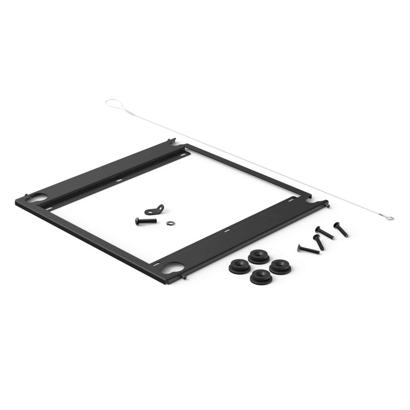Он состоит из секции, крепящейся к потолку и секции, прикреплённой к корпусу сабвуфера, которые могут быть соединены друг с другом. Это гарантирует удобство монтажа при фиксации потолочной секции в нужном месте, а сабвуфер может быть подсоединен впоследствии. Конструкция шарнирного типа обеспечивает легкий доступ к внутренним соединениям. Короб удерживает кабели в нужном положении и позволяет им не касаться конуса динамика.