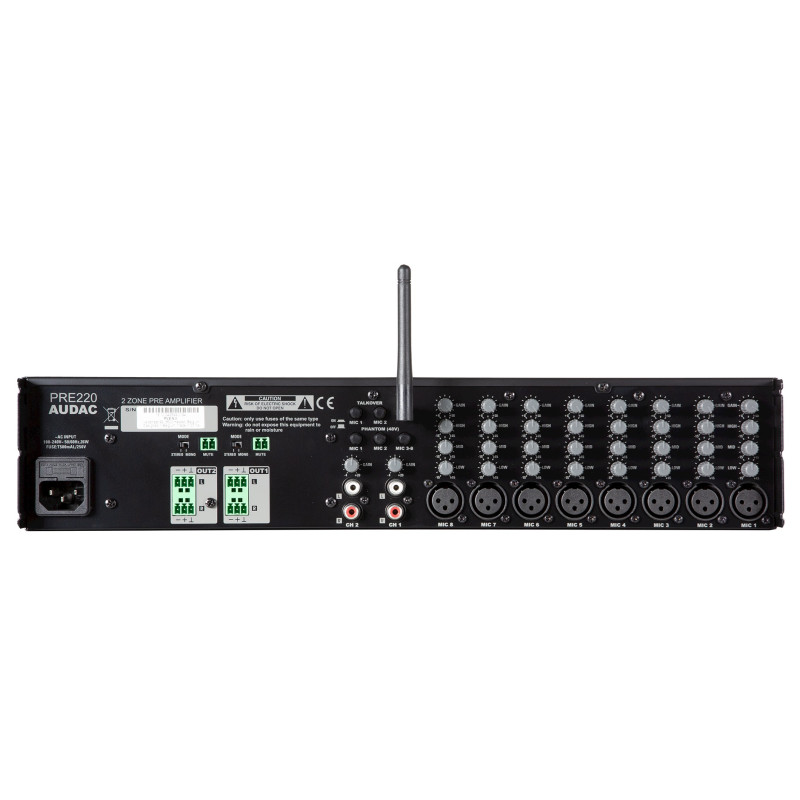 Audac PRE220 – это профессиональный двухзонный 10-канальный предусилитель, входящий в линейку PRE и предназначенный для постоянных инсталляций в бизнес-центрах, торговых площадках, учебных заведениях, отелях и в других подобных помещениях.