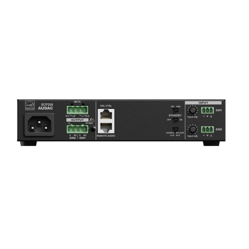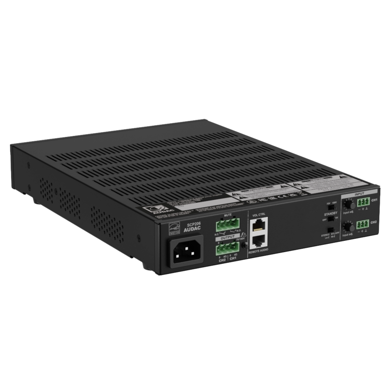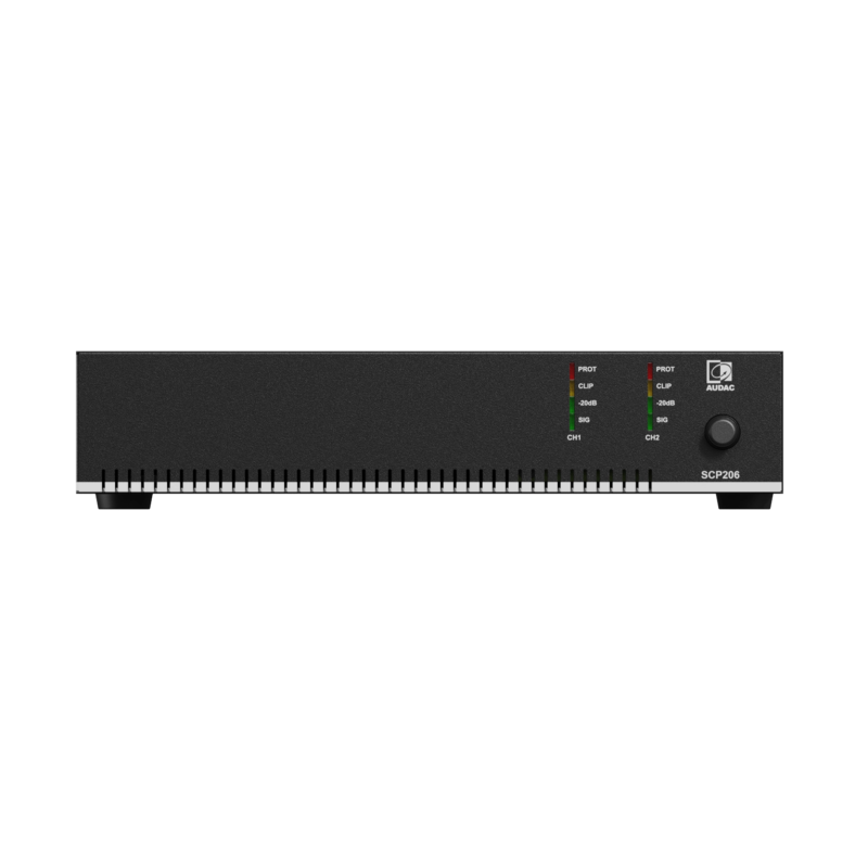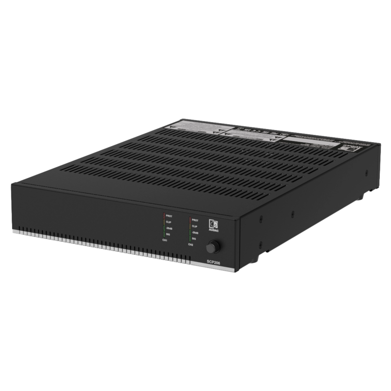 AUDAC SCP206 - это двухканальный универсальный усилитель мощности класса D компактного размера.