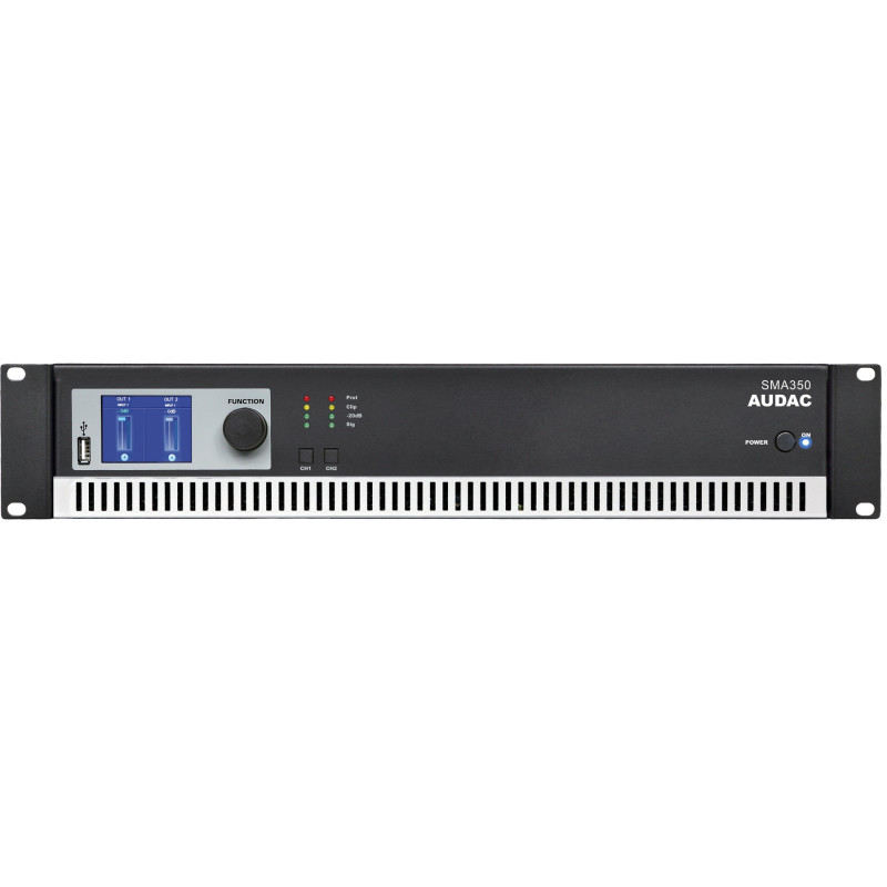 Audac SMA350 – это профессиональный двухканальный усилитель мощности, являющийся младшей моделью в серии SMA, которая предлагает решения для усиления звука как для различных фиксированных, так и для мобильных инсталляций.