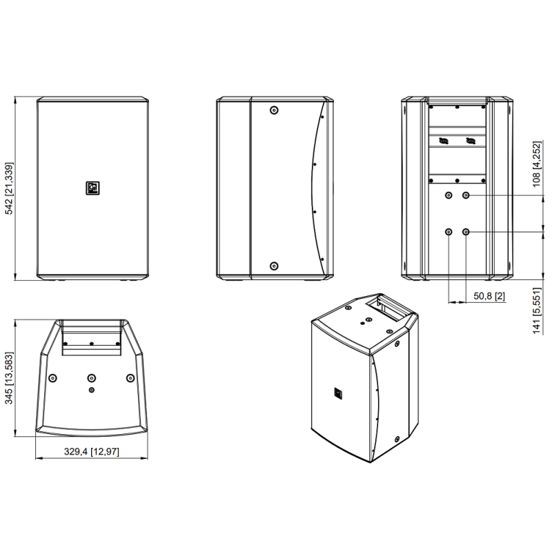 За озвучивание аудиосигнала отвечают 10-дюймовый вуфер с 2-дюймовой звуковой катушкой, а также 1-дюймовый компрессионный ВЧ-драйвер со звуковой катушкой 1.7 дюйма. Эти динамики обеспечивают дисперсию 90 на 70 градусов с возможностью вращения. Максимальная мощность составляет 1200 Вт, а продолжительная – 300 Вт. Номинальное сопротивление равняется 8 Ом. Уровень максимального звукового давление может достигать 121 дБ. Озвучиваемый диапазон частот простирается от 65 Гц до 20 кГц (+/-3 дБ).