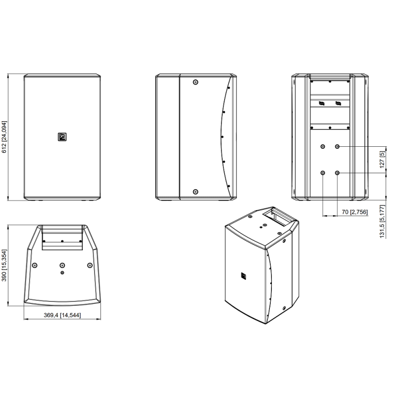 Колонка представлена в прочном и надежном корпусе из березовой фанеры со стальным перфорированным грилем, который обеспечивает защиту динамиков. Вход и сквозной выход сделаны на разъемах SpeakON. Располагать акустику можно как вертикально, так и горизонтально. Для подвеса есть 10 точек с резьбой M10, а для установки на стойку есть стакан 35 мм. Опционально можно приобрести настенный кронштейн MBK112V.