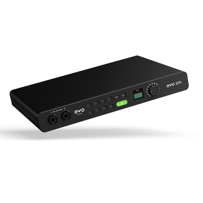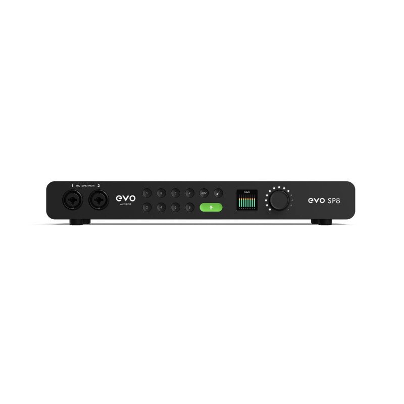 Модель станет эффективным расширителем для звуковых интерфейсов с ADAT. Внешний вид устройства практически идентичен звуковой карте EVO 16, девайс оснащается теми же переключателями выбора каналов и функций, цветным ЖК-дисплеем и большим поворотным регулятором. EVO SP8 поставляется с функцией Smartgain, предлагает восемь предусилителей с входами на комбинированных разъёмах XLR/TRS (принимают как микрофонные, так и линейные источники) и способен обеспечить усиление до 58 дБ. Первые два входа также принимают сигналы инструментального уровня и расположены на передней панели, в то время как восемь линейных выходов на разъемах TRS располагаются на задней стороне устройства.