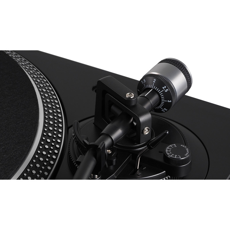 Проигрыватель оснащен S-образным тонармом с регулируемой прижимной силой и универсальным шеллом AT-HS6, на который предустановлен MM-звукосниматель AT-VM95E. Управление тонармом полностью ручное, и на проигрывателе имеется специальная отключаемая подсветка для точного позиционирования иглы на пластинке в случае ограниченного внешнего освещения.