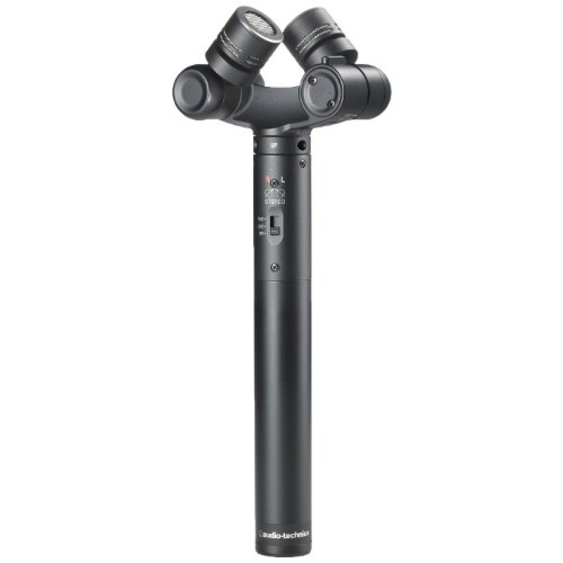 Audio-Technica AT2022 X/Y Стерео микрофон, кардиоид (х2), 20Гц-20кГц, 8,9 mV/Pa, HPF 150 Hz, 122 dB SPL, 3-pin XLRF -- 3.5 mm (1/8“) TRS, питание только батарейка, с выключателем