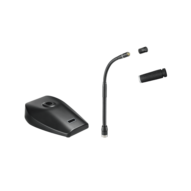 Низкопрофильный элемент микрофона ES925C / DS5 обеспечивает равномерную кардиоидную полярную диаграмму с углом приема 120 °. Он поставляется с поролоновым ветровым стеклом для защиты от взрывчатых веществ. Элемент микрофона крепится к гусиной шее малого диаметра, что обеспечивает очень гибкое позиционирование при сохранении хорошо очерченного внешнего вида. Модуль питания настольной подставки имеет прочную литейную конструкцию и нескользкие нижние накладки, чтобы минимизировать связь поверхностной вибрации с микрофоном. Он оснащен сенсорным переключателем емкостного типа с возможностью локального и удаленного переключения. Локально, он может быть настроен на любой из трех режимов работы: «касание / касание», «касание к разговору» и «касание-отключение звука». Для расширенного управления в конференц-зале и конференц-зале, Закрытие внешнего контакта устройства позволяет запускать внешнее устройство, таких как камера или освещение, от выключателя. Настольная подставка также оснащена фильтром UniSteep®, который обеспечивает крутое низкочастотное затухание для улучшения восприятия звука без ущерба для качества воспроизведения вокала. Как настольная подставка, так и корпус микрофонного элемента имеют хорошо видимый светодиодный индикатор состояния RGB с двумя состояниями. Инновации UniGuard® предлагают непревзойденную невосприимчивость к радиочастотным помехам.