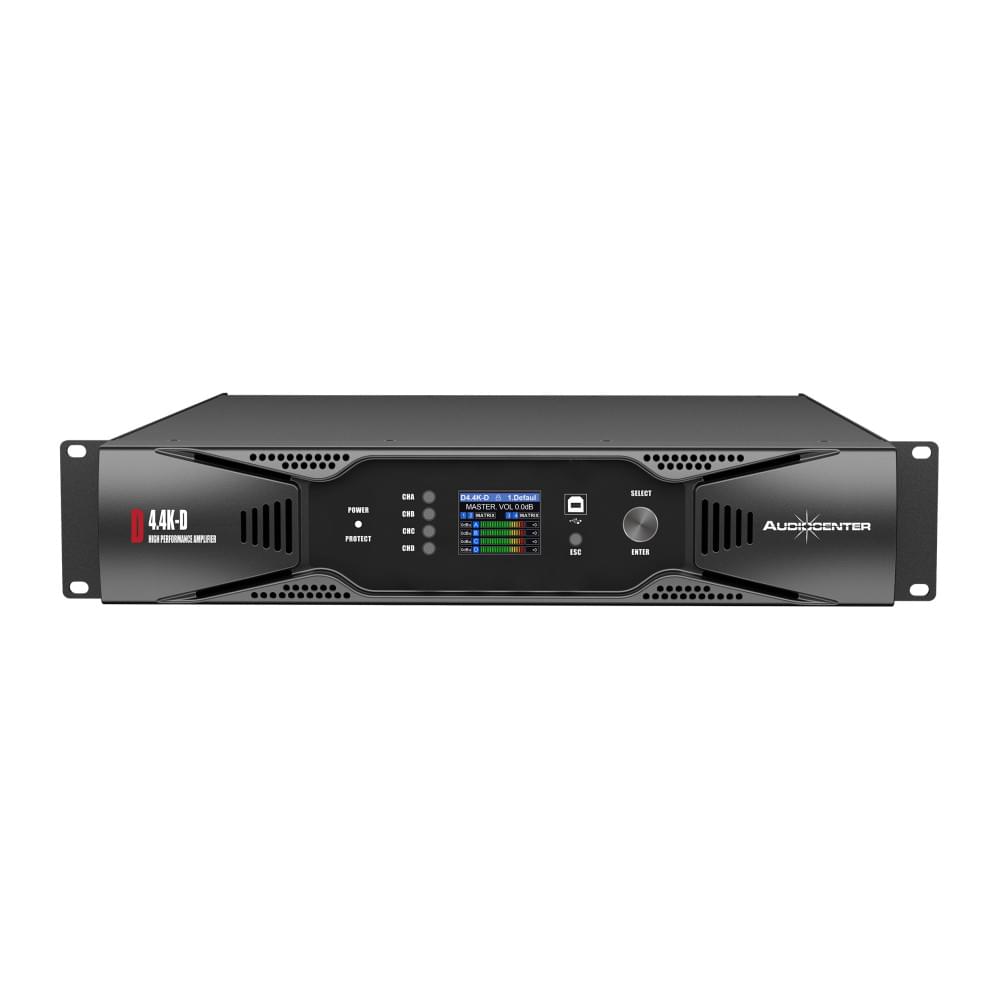 Audiocenter D4.4K-D — это четырехканальный цифровой усилитель мощности класса D с высокоточным производительным DSP, оснащенным фильтрами IIR, FIR для точной настройки и оптимизации аудиосигнала.