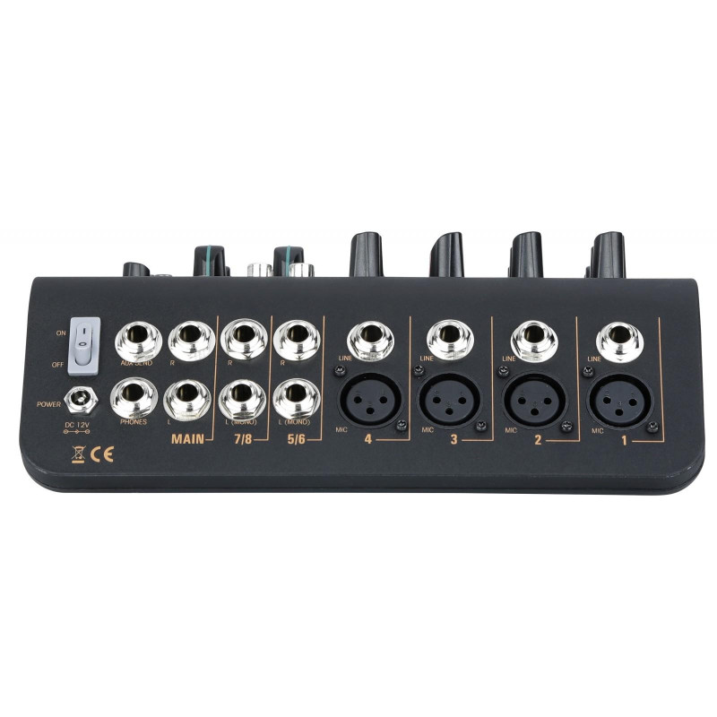 - Модель:6-канальный микшер, 4 микрофонных, 2 стерео входа