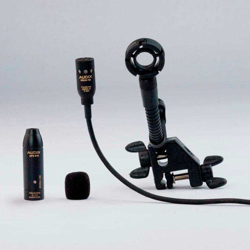 Audix MicroHP Пре-поляризованный конденсаторный микрофон, разработанный для множества применений, включая ударные, речь, вокал и акустические инструменты. Легкий, компактный и предельно прост в использовании. Имеет гипер - кардиоидную характеристику направленности и справляется с уровнями звукового давления в 140 дБ. Работает от фантомного питания 9-52 В и поставляется с фантом-адаптером, креплением типа D-vice (быстрая установка на барабане), кабелем, ветрозащитой и чехлом для хранения. Электронная схема с низким собственным уровнем шумов и симметричный низкоомный выход обеспечивает свободную от помех и искажений передачу сигнала.