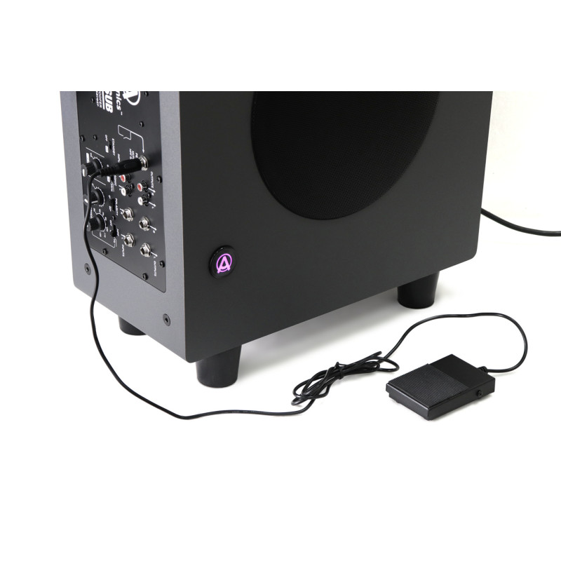 К студийным возможностям сабвуфера также относится наличие входа для подключения педали отключения звука. Это позволяет использовать любую стандартную переключающую педаль типа Sustain для синтезаторов для быстрого сравнения звучания фонограммы с сабвуфером или без. Одновременно с отключением звука сабвуфера всегда отключается фильтр HPF. Это позволяет сравнить звук мониторов без влияния фильтра HPF, если он используется для разделения частотного диапазона между сабвуфером и мониторами.