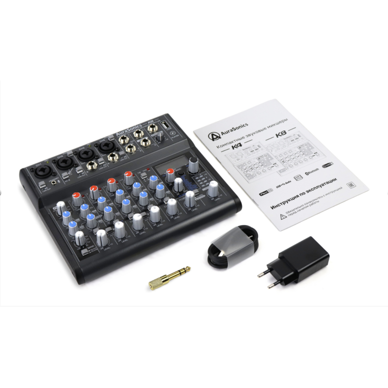 Микшеры К4 и К8 используют для питания стандартный сетевой адаптер 5В через кабель USB-A - USB-C. Также возможно питание микшера от USB- разъёма компьютера, при этом переключатель на задней панели определяет что микшер получает только питание DC или работает как аудио-интерфейс PC.