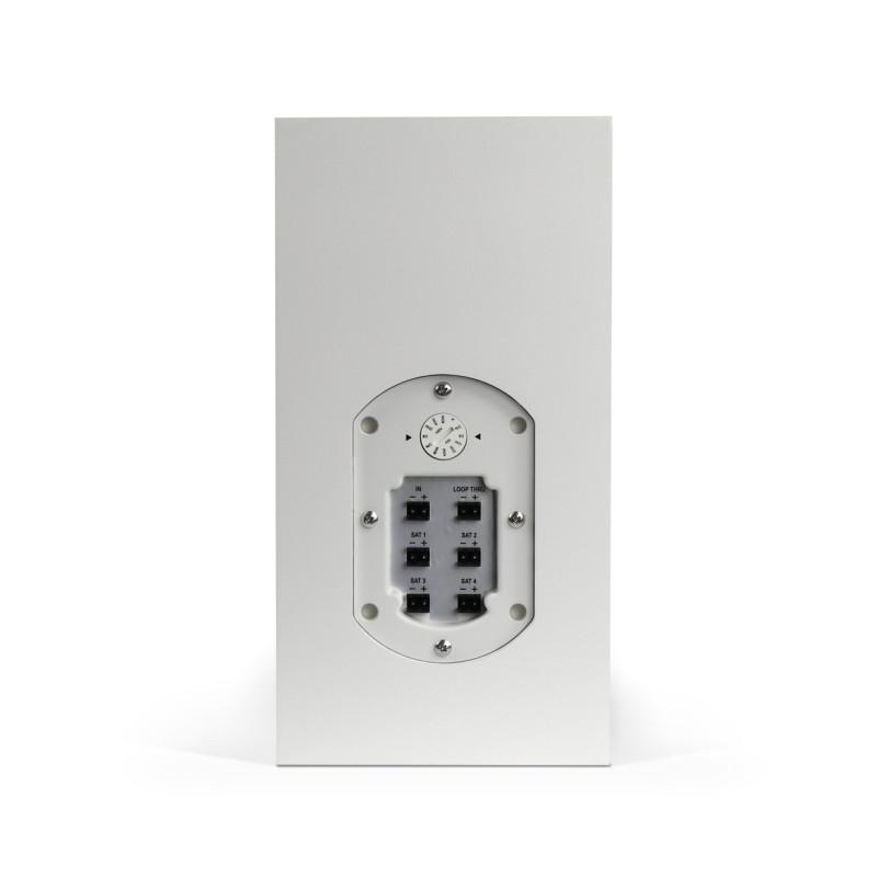 Комплект AuraSonics QUADRATE является монофоническим, то есть требует использования одного канала усилителя. Комплект можно подключить к усилителю в низкоомном режиме 8 Ом или к трансляционной линии 70 или 100 В, что позволяет использовать с одним усилителем несколько комплектов QUADRATE одновременно, если требуется озвучить помещение большей площади.