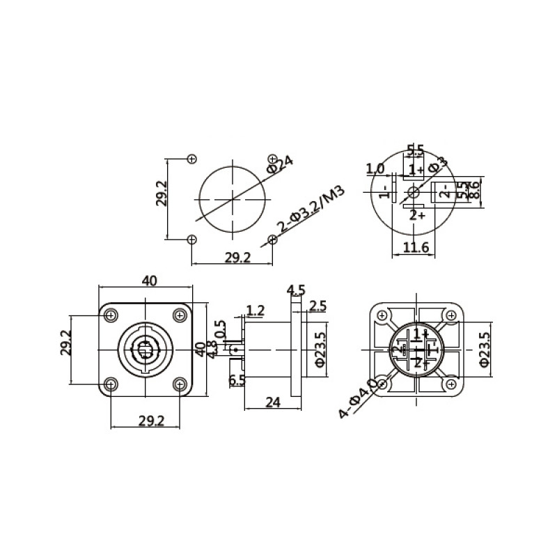- Модель:Панельный разъем 4-контактный спикон female