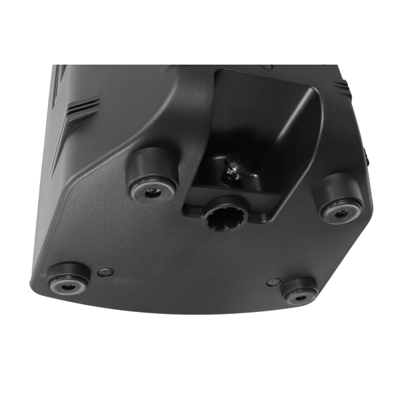 Прочный пластиковый корпус со встроенными ручками обеспечивает удобство транспортировки. Для установки предусмотрен стандартный 35-мм стакан с фиксирующим винтом. 6 точек крепления M8 и комплектные рым-болты позволяют подвешивать систему как вертикально, так и горизонтально, что делает её готовой к любым сценариям монтажа.