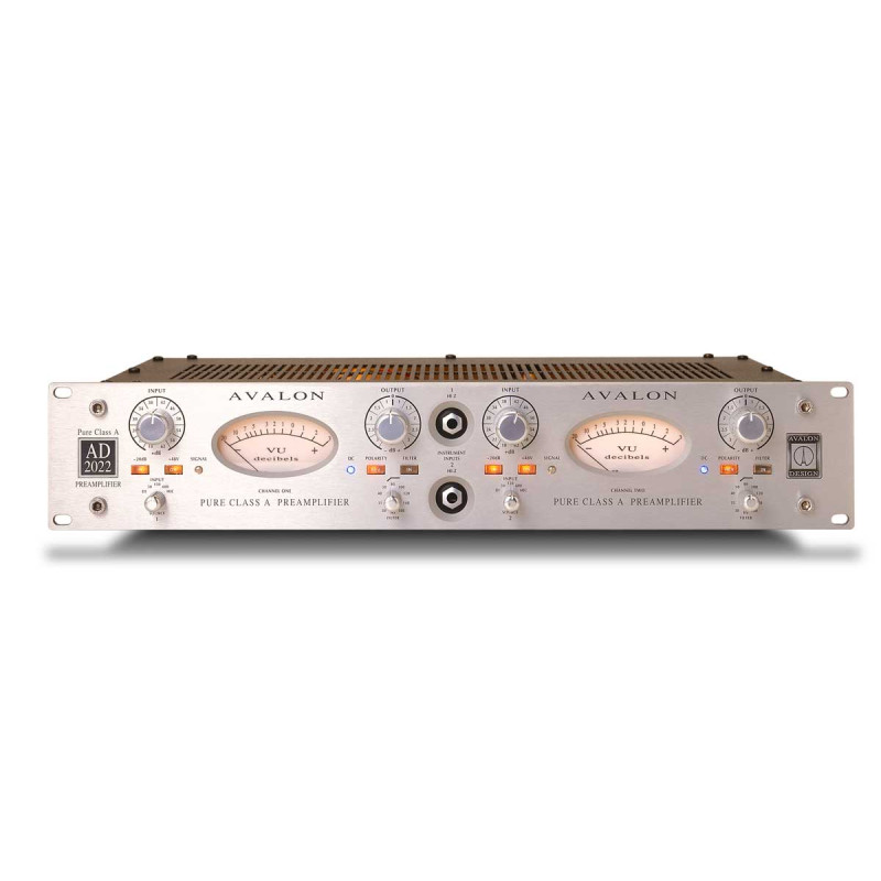 Двухканальный предусилитель AD2022 класса А заключён в корпус высотой 2U с одинаковыми глубиной и шириной, из-за чего создаётся впечатление, что для его установки необходима особо прочная рэковая стойка. И это при том, что AD2022 комплектуется внешним источником питания! Прибор поставлен в один ряд с ламповыми моделями - кроме абсолютно новых схемотехнических решений, в AD2022 используются компонентные блоки от моделей M2, M22 и M5.