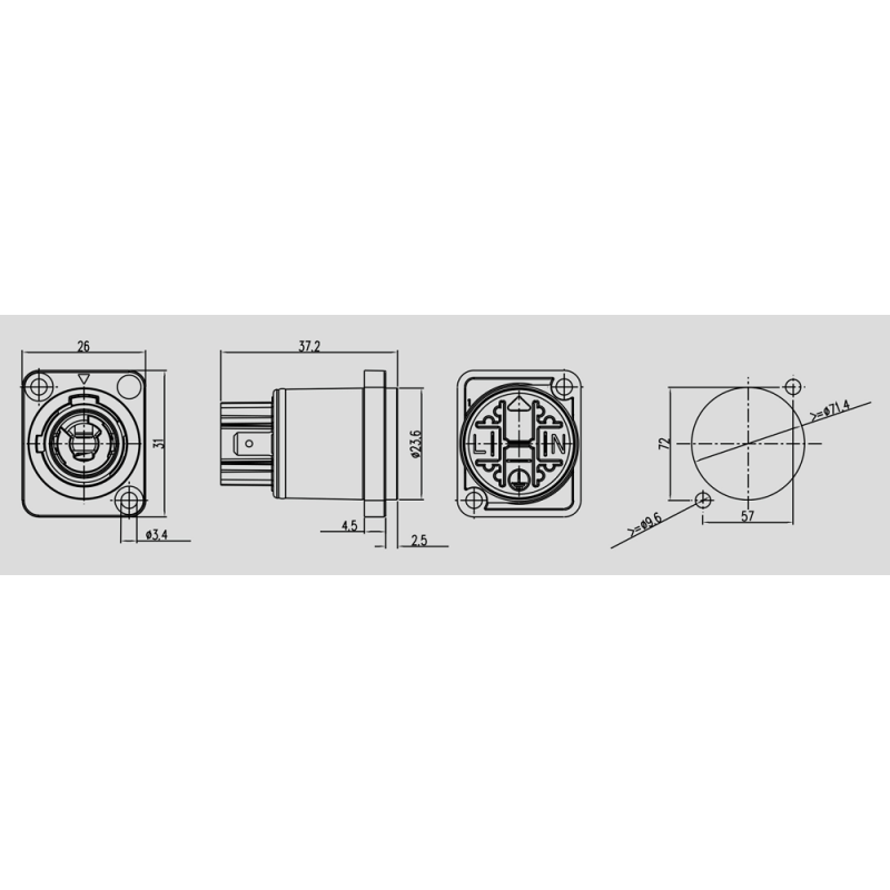 - Модель:Панельный разъем PowerCon