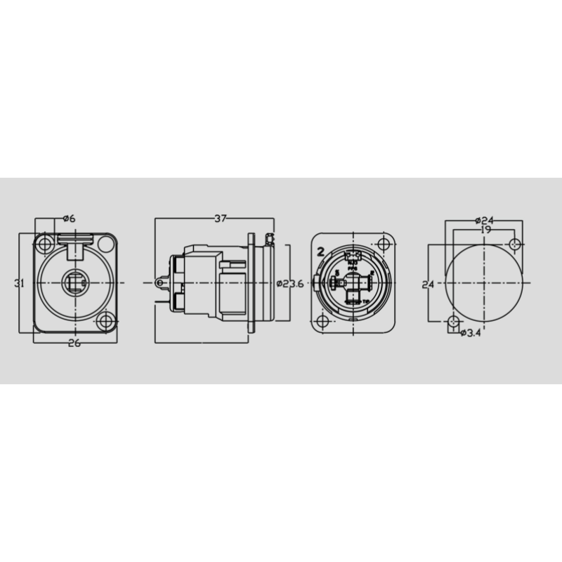 - Модель:Панельный разъем стерео Jack, гнездо