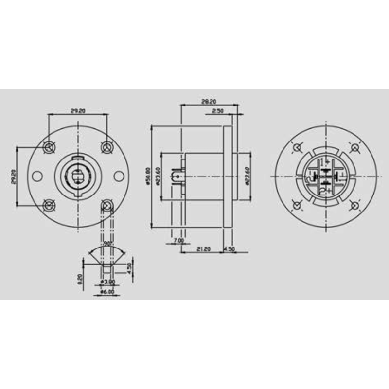 Используется для индивидуальной установки в звуковое оборудование: акустические системы, усилители и т.п. Совместим с кабельными разъемами L2FX, L4FX.