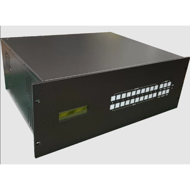 Шасси матричного коммутатора AVCLINK MC-1616 - это модульное устройство для объединения в одном корпусе нескольких сетевых аудио-видео карт (печатные платы) для коммутации сигналов форматов HDMI, DVI, HDBaseT, SDI.