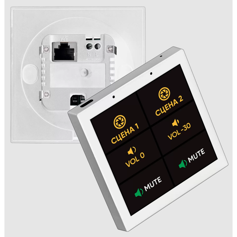 Панель оснащена сенсорным IPS-дисплеем с диагональю 4 дюйма, разрешением 480*480 px и светимостью 300 нит (регулируется). Назначение кнопок настраивается. Работает под управлением надежной и проверенной множеством юзеров операционной системы Android 13 с оболочкой Audac Touch2. Техническое наполнение: процессор RK3566, Cortex-A55 на 4 ядра, тактовая частота 1.8 ГГц; оперативная память 2 Гб, встроенная постоянная память 32 Гб. Предусмотрены следующие разъемы 1х RJ-45 (управление через TCP/IP и питание PoE), 1х RS-485 и 1х USB Type-C, 1х Phoenix 2-pin (питание от сети 220В). Беспроводное подключение гаджетов через встроенные модули Wi-Fi (802.11b/g/n) и Bluetooth 5.2.