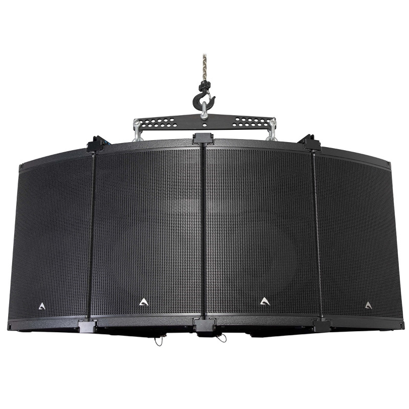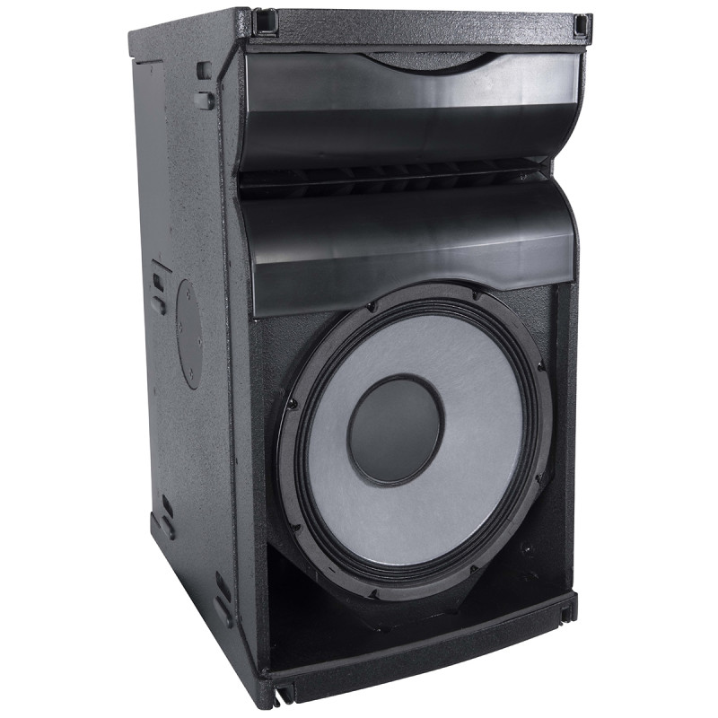 Axiom AX1012P – Пассивный элемент линейного массива с фиксированным углом установки в кластере, низкочастотная секция представлена динамиком 12'', высокочастотная – одним динамиком 1,4'' типа Constant Curvature.