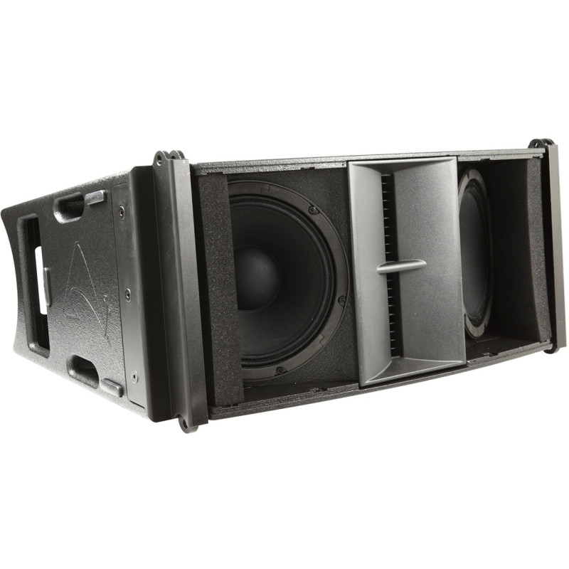 Axiom AX2010P – Пассивный элемент линейного массива с системой подвеса, низкочастотная секция состоит из двух динамиков 10'', высокочастотная – из двух динамиков 1,4''.