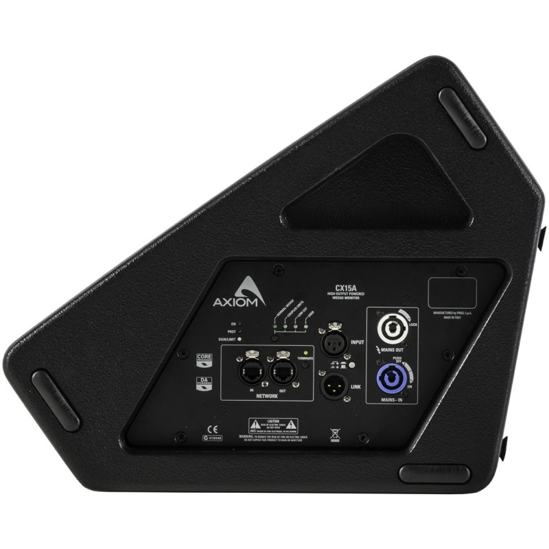 Axiom CX15A – Активная двухполосная акустическая система, низкочастотный динамик 15'', высокочастотный – 1,4'' с максимальным звуковым давлением 131 дБ.