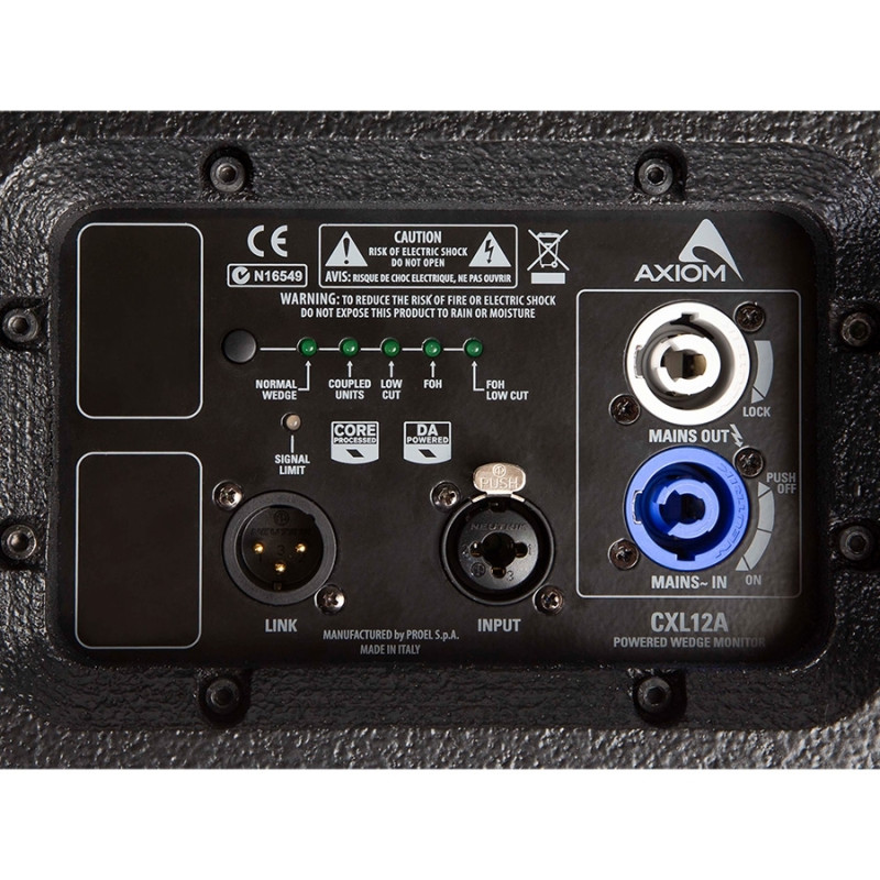 Axiom CXL12A – Активная двухполосная акустическая система, низкочастотный динамик 12'', высокочастотный – 1''.