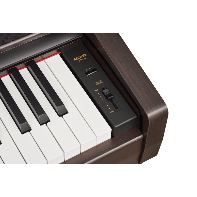 Becker BAP-62R За цифровым пианино Becker BAP-62, вы сможете полностью погрузиться в процесс исполнения фортепианной музыки. Клавиши с тройным сенсором выглядят, ощущаются и реагируют на нажатия в точности, как клавиши настоящего акустического инструмента. Звуковой процессор c 256-голосной полифонией и расширенной коллекцией высококачественных тембров дает пианисту возможность полностью раскрывать эмоциональное многообразие даже самых масштабных и технически сложных музыкальных произведений.