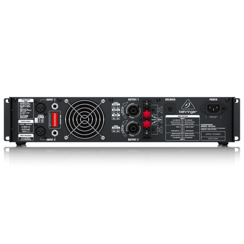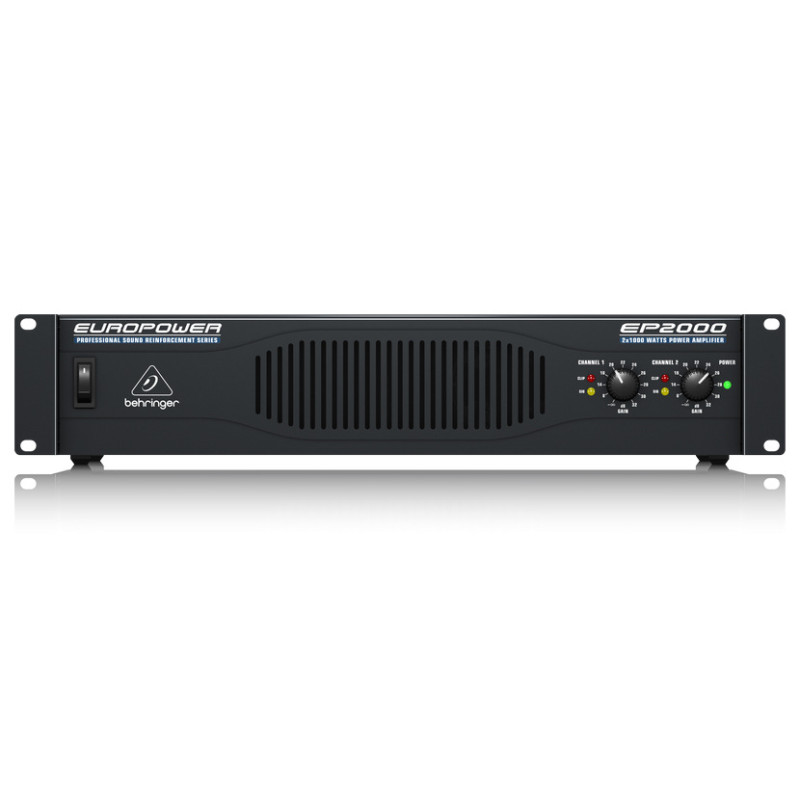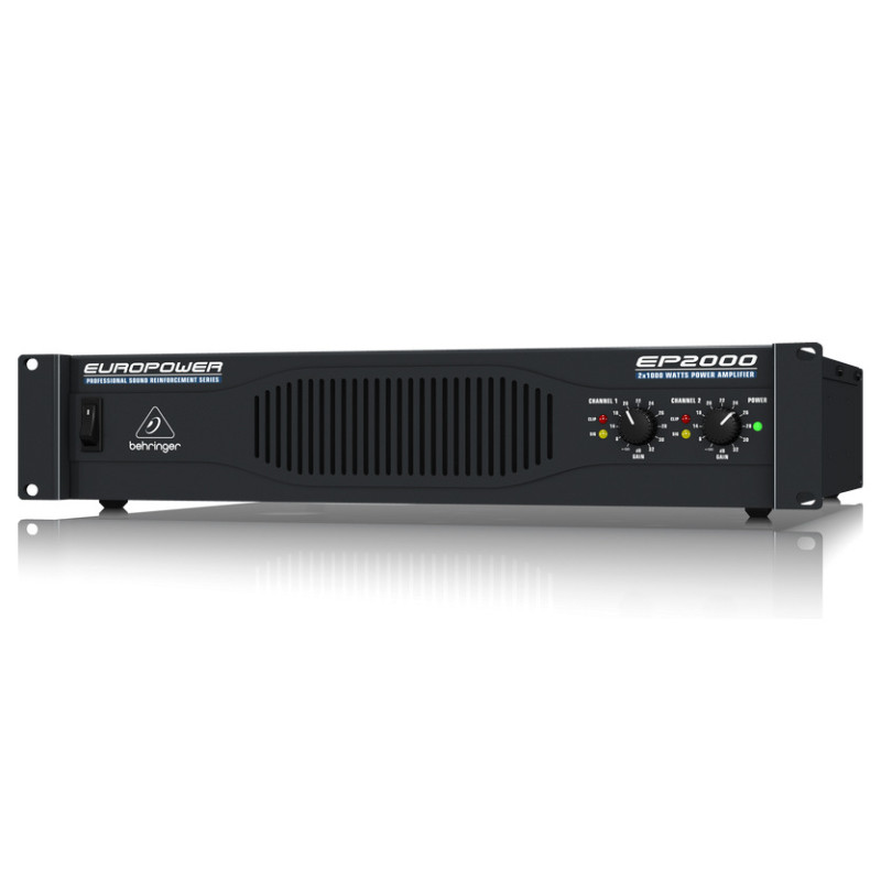 Behringer EUROPOWER EP2000 – профессиональный студийный двухканальный усилитель мощности класса AB, работающий в монофоническом, стереофоническом и мостовом режимах.