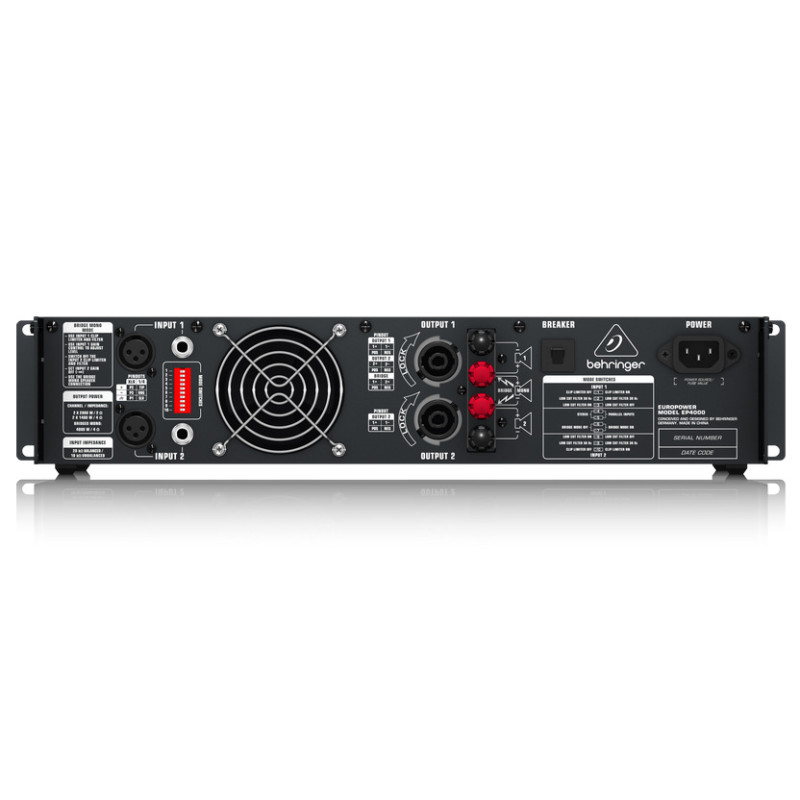 Behringer EUROPOWER EP4000 – профессиональный студийный двухканальный усилитель мощности класса H, работающий в монофоническом, стереофоническом и мостовом режимах, рассчитанный на подключение концертных АС, требующих высоких мощностей.