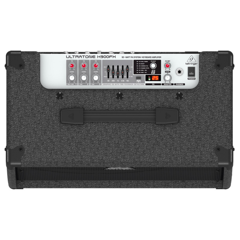 Behringer ULTRATONE K900FX – клавишный комбоусилитель со встроенным процессором эффектов, который также может быть использован и для ударных инструментов, и для вокальных приложений.