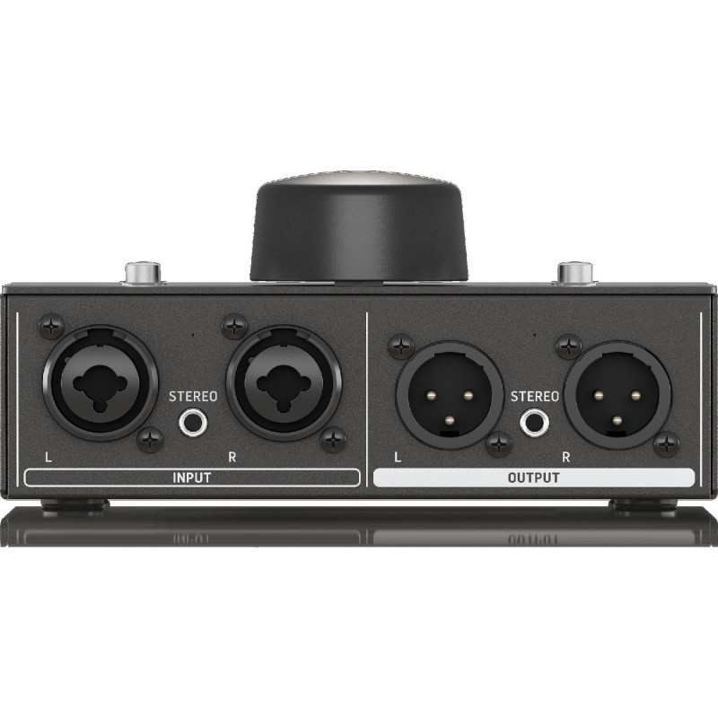 - Два высококачественных XLR выхода и 3,5 мм (1/8") стерео выход для подключения к студийным мониторам