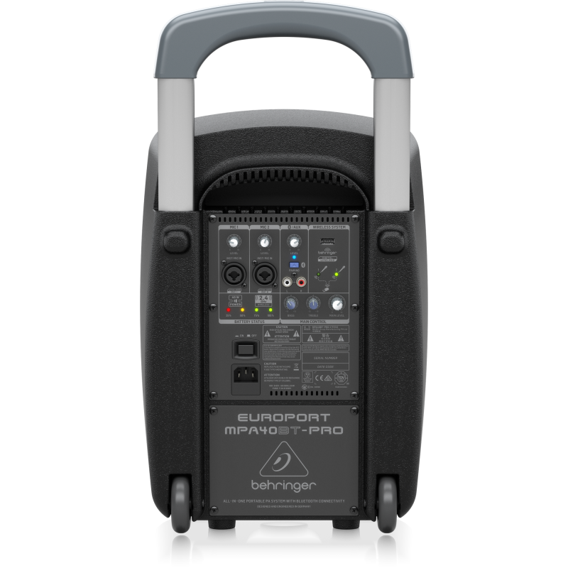 Behringer EUROPORT MPA40BT-PRO – активный портативный двухполосный концертный громкоговоритель серии EUROPORT, содержащий в себе усилитель мощности класса D, а также малошумные комбинированные входы.