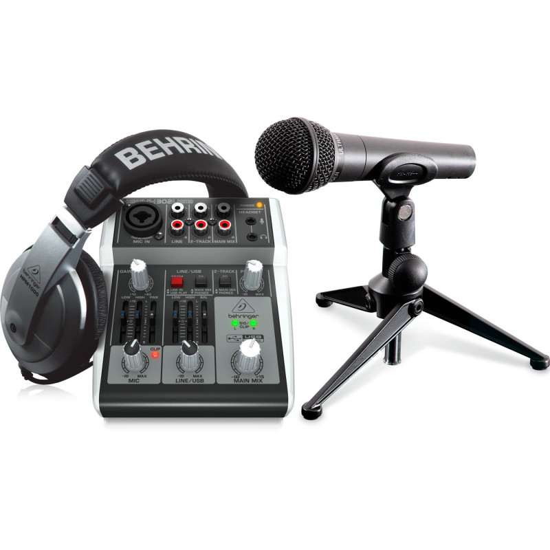 Behringer PODCASTUDIO 2 USB — это комплект из микшерного пульта XENYX 302USB с USB - аудиоинтерфейсом, динамического микрофона XM8500 и наушников закрытого типа HPM1000. Комплект применим для домашней звукозаписи, записи подкастов, потокового вещания и озвучки видео, подойдет для создания музыки.
