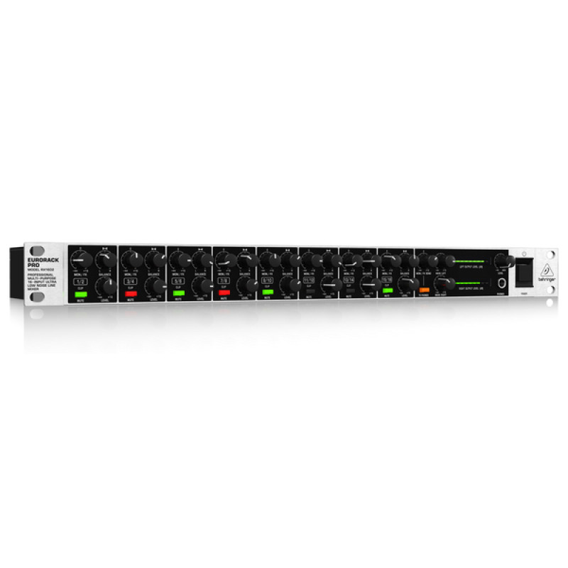 Behringer EURORACK PRO RX1602 – это профессиональный 16-канальный линейный малошумящий микшер, выполненный в рэковом формате. Он предназначен для сведения сигналов из небольшого количества источников (например, во время студийных сессий), быстрого управления уровнями сигнала и наглядного мониторинга процесса микширования.