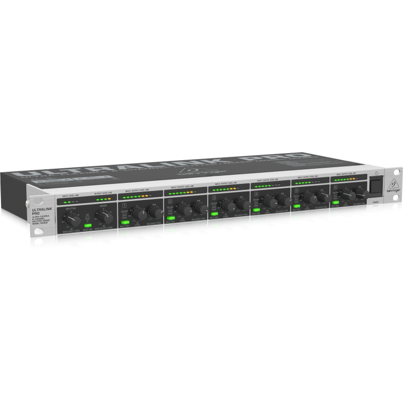 По числу каналов во входной секции расположено по 6 входных и выходных разъёмов. Четыре канала подключены к разъёмам типа XLR, причём контакты выходных разъёмов имеют золотое напыление, обеспечивающее лучшую передачу сигнала и износостойкость гнёзд. Ещё два канала имеют входы и выходы TRS-типа. Кроме того, имеются стереофонические вход и выход main mix, также с гнёздами XLR. На панели управления для них предусмотрены отдельные регуляторы уровня и четырёхуровневые шкалы громкости.