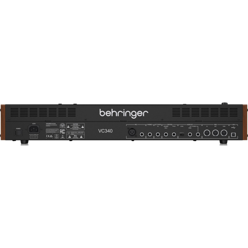 BEHRINGER VOCODER VC340 аналоговый синтезатор.Behringer Vocoder VC340 представляет собой современную версию классического аналогового вокодера и синтезатора ансамбля струнных инструментов Roland VP330, появившегося в 1979 году. Новый инструмент имеет секцию аналогового вокодера Vocoder, голосовую секцию "Human Voice" (мужской и женский голоса) и секцию "Strings" для создания звуков хора или струнной группы. Звуки секций могут смешиваться между собой. Синтезатор оснащен клавиатурой с 37 полувзвешенными и чувствительными к скорости нажатия полноразмерными клавишами - это на октаву меньше, чем клавиатура VP330 и делает инструмент более портативным. VC340 имеет 12 генераторов, частоты которых делится октавно, что обеспечивает полную полифонию по всей клавиатуре, однако, наличие лишь одного генератора огибающей позволяет ему влиять только на первую ноту созвучия. Различное время атаки для голосов и для струнных дает возможность получать эффект выплывания одного звука из другого. Помимо обычной игры VC340 позволяет подключить микрофон и модулировать любой аудио сигнал, включая человеческий голос. Для усиления эффекта ансамбля синтезатор снабжен хорусом, использующим аналоговую BBD линию задержки. Набор из 32 фейдеров и ручек управления обеспечивают доступ ко всем параметрам инструмента в режиме реального времени. Для подключения к другим синтезаторам и секвенсорам VC340 оснащен MIDI и USB интерфейсами.
