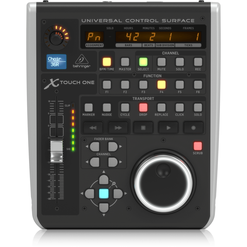Behringer X-TOUCH ONE это универсальный контроллер для домашней студии или концертного оборудования. Поддерживает практически все протоколы управления (включая HUI, MIDI и Mackie Control) и легко интегрируется в любую цифровую звуковую рабочую станцию (DAW). Оборудован сенсорным моторизованным фейдером, воспроизводящим все проведенные изменения и автоматизацию в реальном времени. Яркий LCD экран над фейдером показывает необходимую информацию об изменяемом в данный момент треке и параметре, создавая ностальгическую эмуляцию олдскульных студий звукозаписи. Для простоты управления оборудован поворотным энкодером, регулятором, и 34 назначаемыми светодиодными кнопками. Контроллер поддерживает возможность назначения параметров на управляющие элементы контроллера, использование в MIDI режиме, создание пользовательских пресетов и полный контроль над функциями DAW. В комплекте идет код на бесплатное скачивание мощной виртуальной рабочей станции Tracktion, благодаря которой возможно управление динамическими автоматизациями, запись MIDI и управление VST и AU плагинами. X-TOUCH ONE позволит собрать студию мечты, используя самые передовые технологии и разработки.