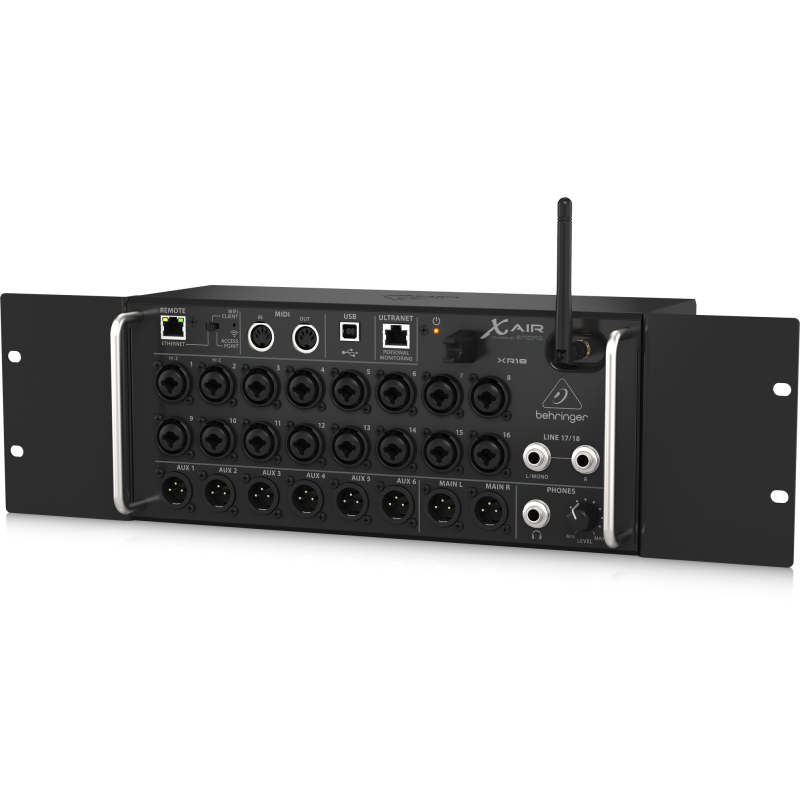 Behringer XR18 рэковый цифровой микшер, управление с iPad или Android-планшетов, 18 входов, 12 подгрупп, Wi-Fi, 18-канальный аудиоинтерфейс для шины USB.
