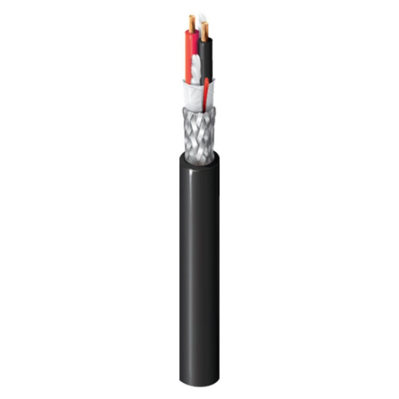 Структура: 2х0,15 мм2 (2х40*0.008 мм), проводник - витой /голая медь высокой проводимости, AWG 26, плетеный экран из луженой меди (95%), t (-20°C +60°C), диаметр кабеля 4.3 мм, оболочка (PVC)